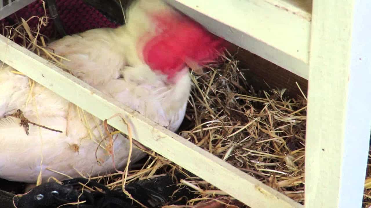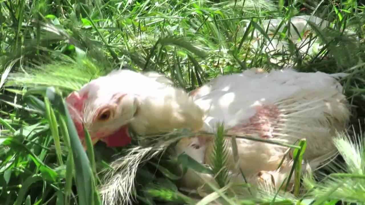 גאיה גולדברג, רכזת פרויקט אנימלס להצלת תרנגולות מכלובי סוללה: "תראו את המקסימות האלה! שלישיית תרנגולות ניצולות מלול סוללה, התעוררו בבוקר הראשון לאחר הצלתן, והתנפלו בניקורים על הקיר הגירני. הסיבה? הן פשוט מורעבות לסידן. למה? 1. עיוותו אותן גנטית כך שיטילו 300 ביצים בשנה במקום 20. כמעט מדי יום מוטלת ביצה, שקליפת הסידן שלה זוקקה מגופה…